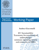 Giacomelli, A. (2021). EU Sustainability Taxonomy for non-financial undertakings: summary reporting criteria and extension to SMEs. Working Papers Series (No. 29/WP/2021). Department of Economics, Ca’ Foscari University of Venice. ISSN 1827-3580