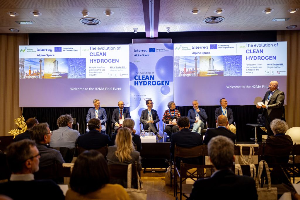 The Evolution of Clean Hydrogen. Perspectives from production to use in mobility and industry” is the final event of the European project H2MA – Green Hydrogen Mobility for Alpine Region Transportation, co-funded by the European Union through the Interreg Alpine Space Program. H2MA aims to accelerate the development of hydrogen infrastructure for public transport and freight. Among the results achieved are a shared tool for planning hydrogen refueling networks, pilot strategies for developing H2 corridors, a Green H2 Route Masterplan, and Roadmaps for H2 Valleys to guide investments, financing, and synergies. These outcomes pave the way for sustainable hydrogen mobility that is truly extended to the entire Alpine area.