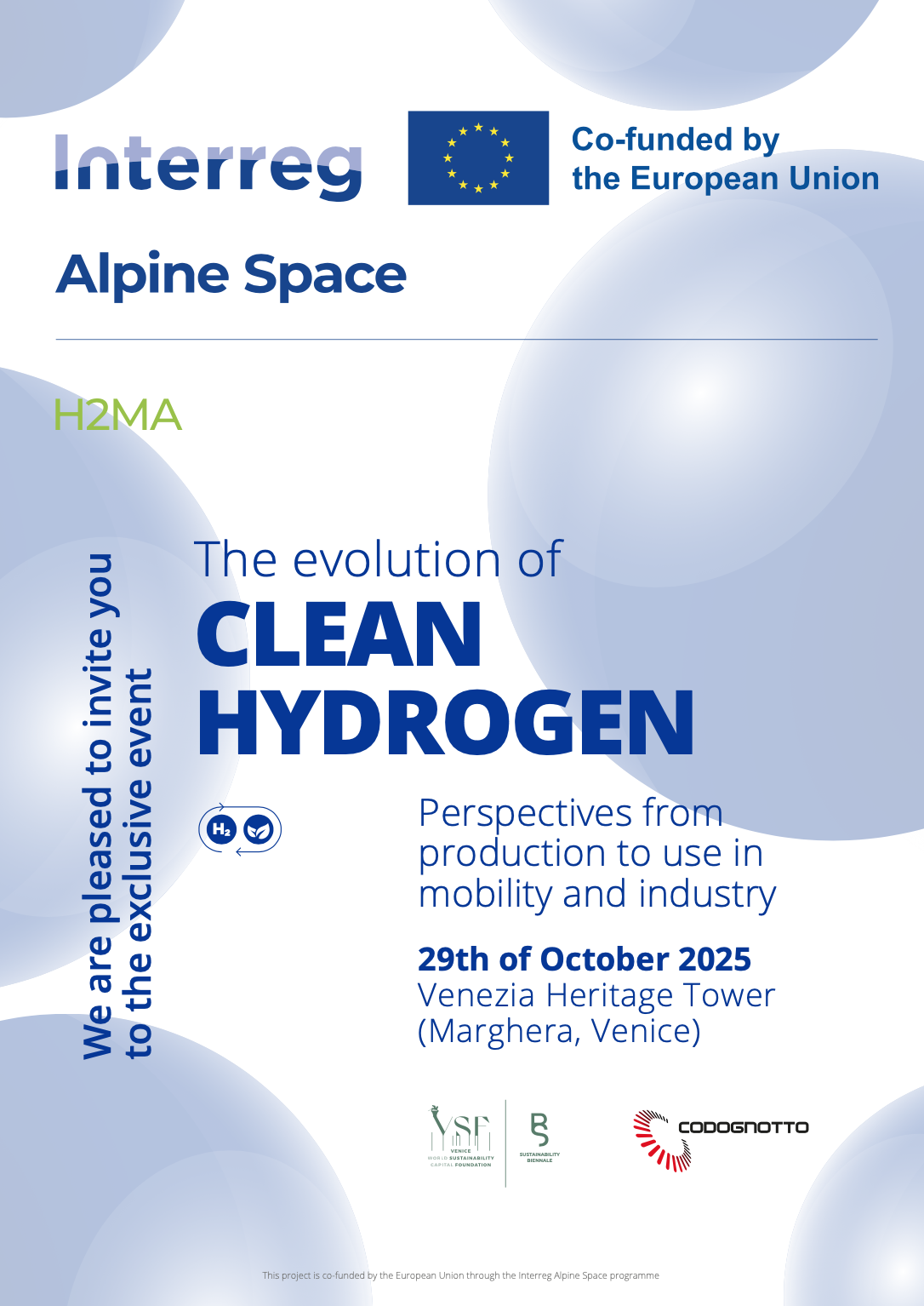 The conference, co-organized by Venice Sustainability Foundation (VSF) in collaboration with Codognotto and included in the official program of Biennale della Sostenibilità 2025, offers a forum for institutions, businesses, and research centers to share experiences, findings, and new opportunities for the large-scale dissemination of hydrogen applications in Europe and the Alpine region.